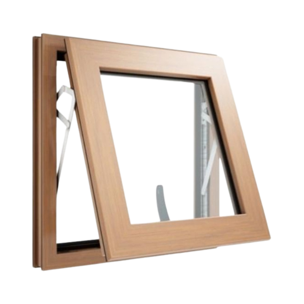 Tipo de ventana que se abre hacia afuera desde la parte superior mediante brazos de acero inoxidable de soporte.